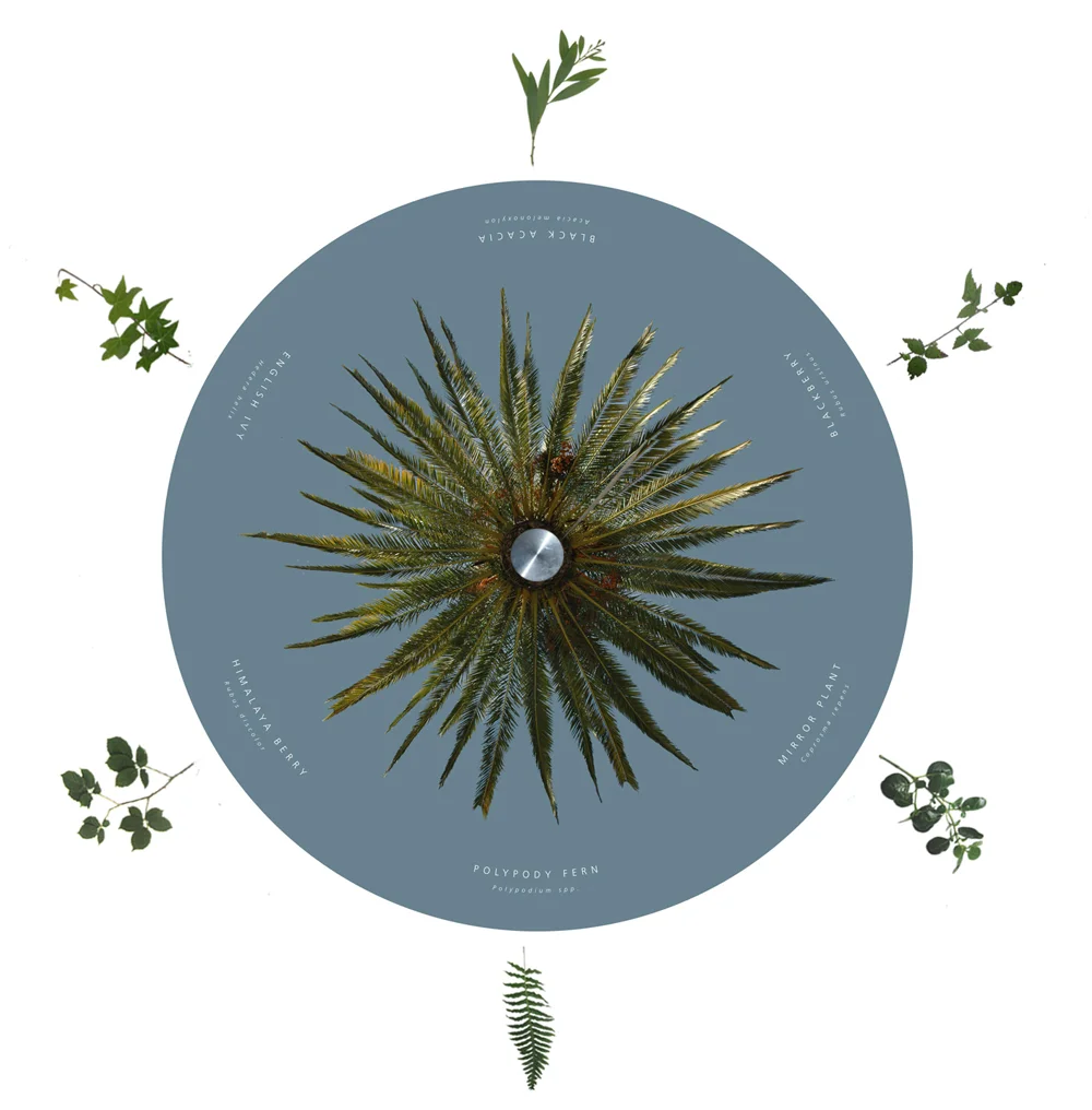 Developed for an Exploratorium public program on urban street botany, live specimens of plants commonly seen as epiphytes growing on Canary Island Palms were displayed on a tripod mounted circular table graphic. A spotting scope fitted with a digital screen accompanied the display, enabling observers to explore the aerial plant life growing on nearby street palms at magnified scale.